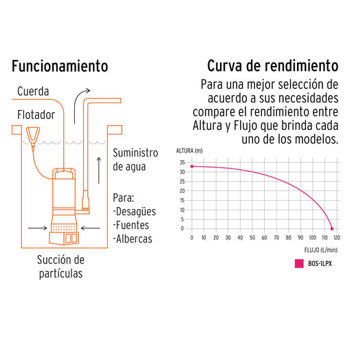 Bomba sumergible de hierro fundido para agua limpia 1/2 HP 100169 BOS-1/2LH