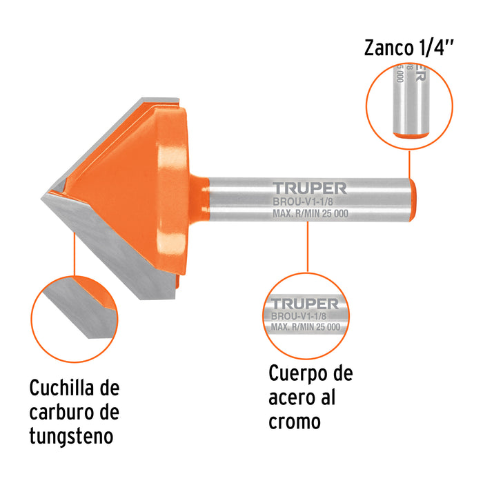 Broca para router, corte en 'V', 1-1/8', Truper 102719 BROU-V1-1/8: Pieza