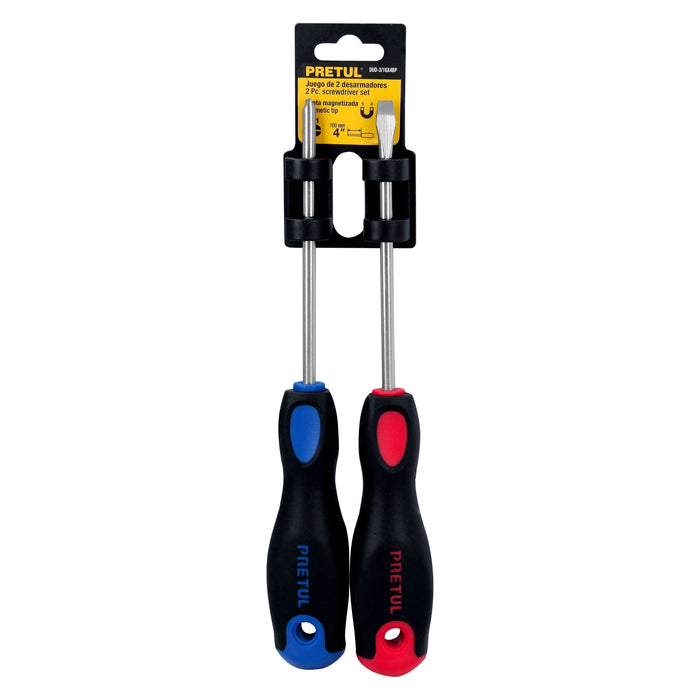 Dúo de desarmadores 3/16' x 4' mango Comfort Grip, Pretul 20216 DUO-3/16X4BP